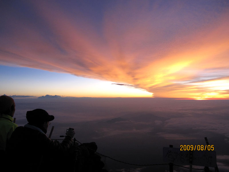 ガイドさん曰く、『今年最高の御来光』と。頂上には山小屋(土産屋)が3軒。「東京屋」に集合。
