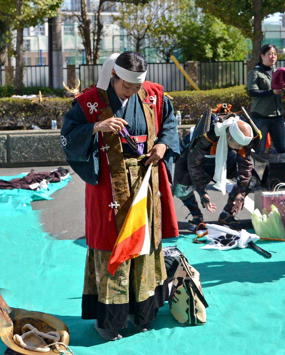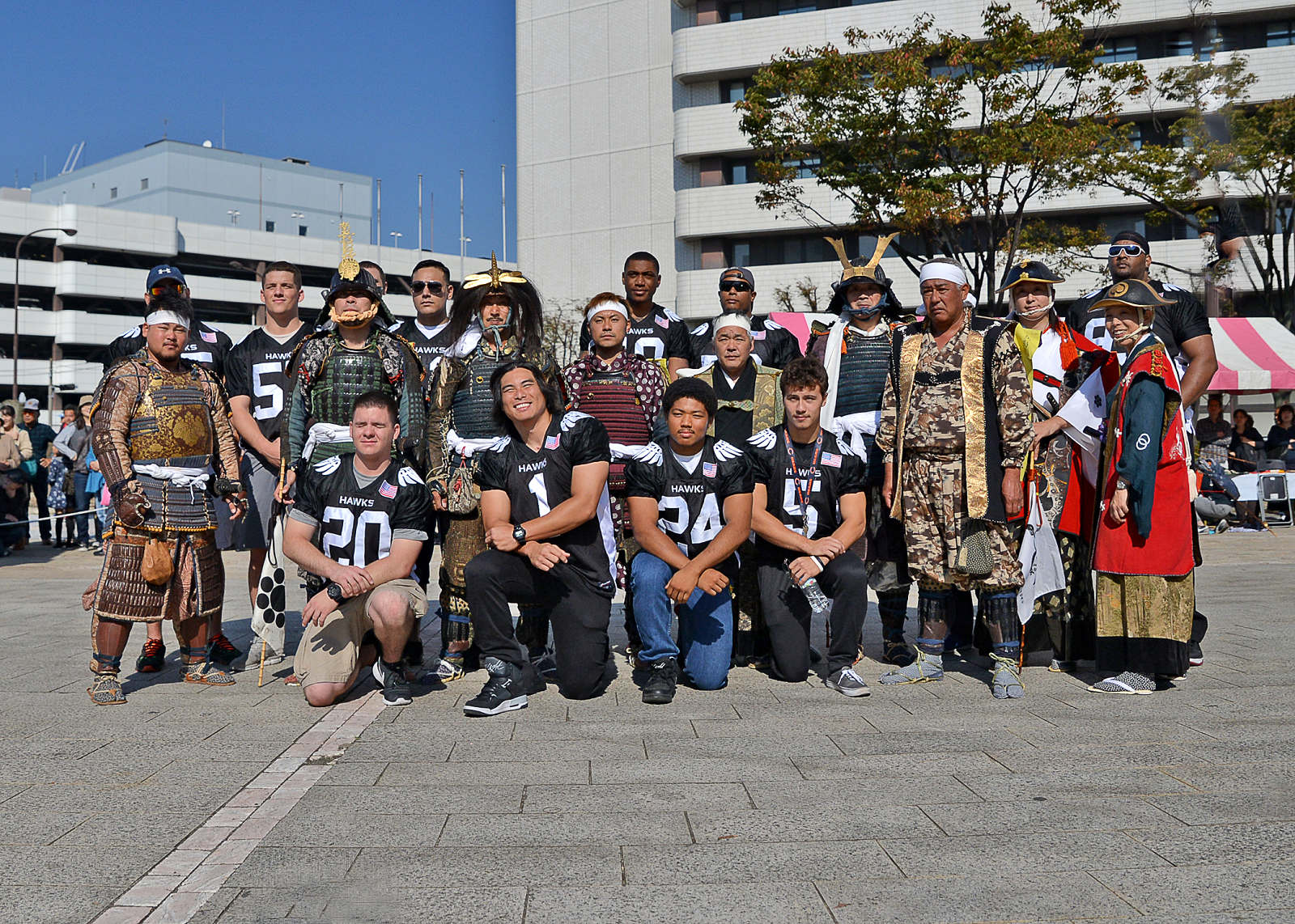 震災後もいろいろ福島の方々と関わりを持つようになりました。福島の人々から「震災でお世話になった米軍、自衛隊にお礼を言いたい」という考えの発端で、賛同して頂いた企業から資金集め可能となったイベントです。中でもボーイング社は、社員の寄付金によるもので、日本の大手はどこも対応してくれず日本企業はまだ社会貢献という考えが浸透していないという事を身を持って感じました。私の声に耳を傾け、文句を言わず協力してくれた友人、同僚、米軍、海上自衛隊、企業には心から感謝する企画でした。騎馬武者を人垣から守る米軍のアメフトチーム・シーホークス・海上自衛隊の半袖姿この3者は横須賀以外では見られない光景で、横須賀らしさが出せて良かったと思います。