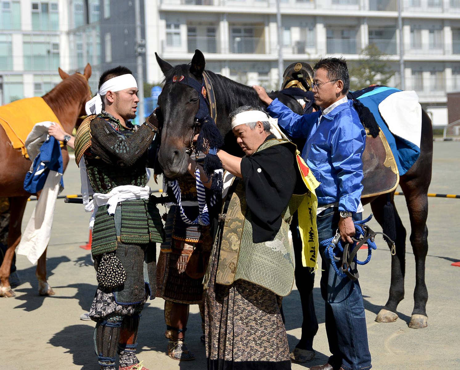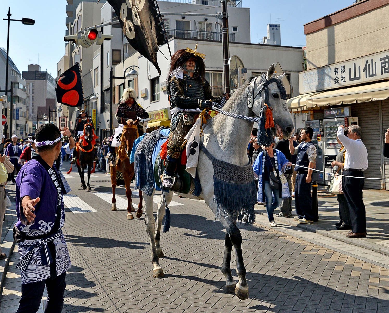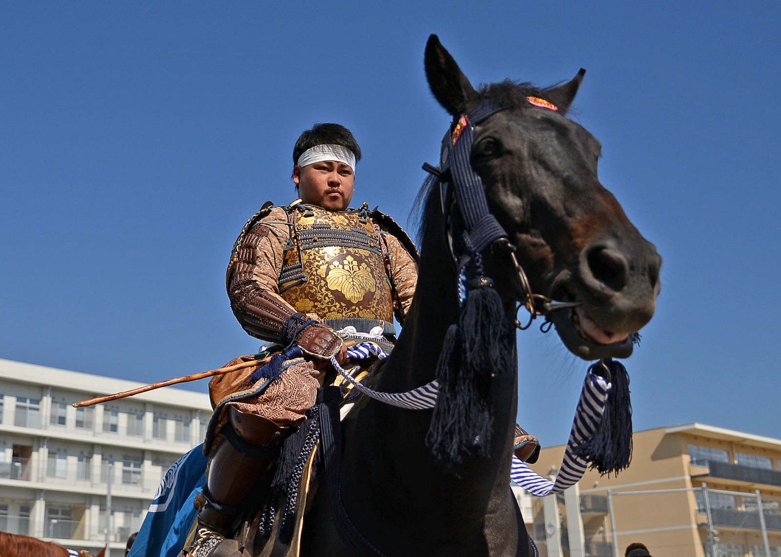 国の重要無形民俗文化財で毎年7月、福島県相馬市と南相馬市で開催される。よろい姿の「武者行列」や旗指し物をなびかせて疾走する「甲冑競馬」、花火で打上げた旗を奪い合う「神旗争奪戦」などがある。相馬氏の始祖・平将門が937年に、野馬を敵兵に見立てた軍事演習を下総国(千葉県)で行ったのが起源とされる。