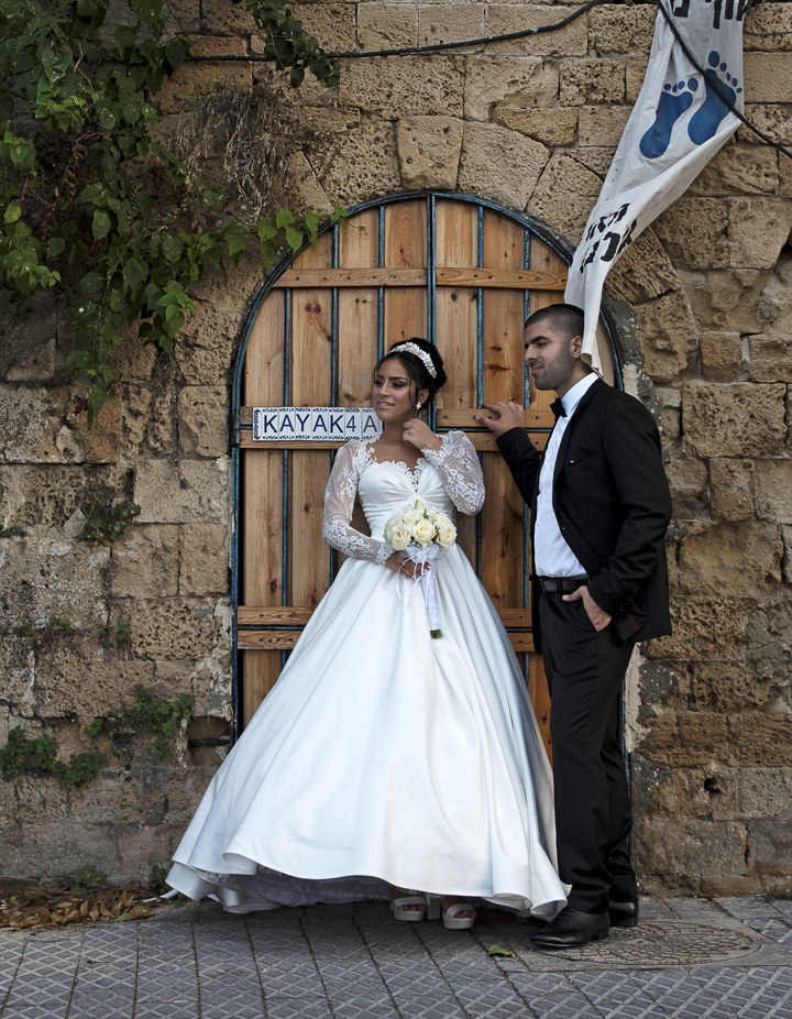 〔備考〕 写真の上でクリックすると大きな写真が見られます。背景は港町ヤッフォで撮影した花嫁姿です。